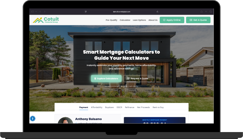 We are the only website and calculator suite platform built by people who’ve actually run a mortgage business — designed to help you grow and stand out online.
