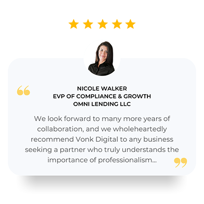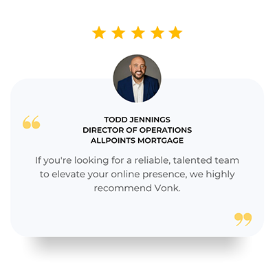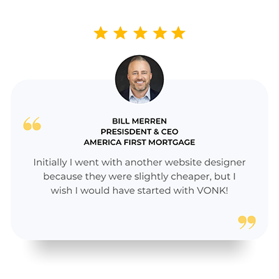 No! This is a very streamlined process of onboarding. First off; one of the major benefits of a the Vonk Digital mortgage website platform is that we have spent over 10 years building this platform that you get to leverage in a matter of days. You need to provide a logo (that’s what we base the color theme of the entire site on), your bio and about us, and have your own domain.