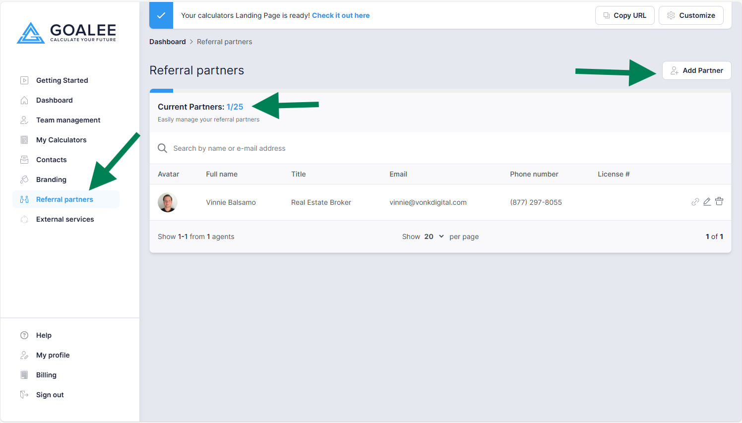 Current Goalee Users have immediate access to create co-branded calculators that can be embedded on your partner’s website or marketed with the instanlty generated Goalee Landing page!